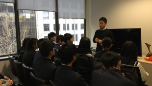 まず、マネージャーの山口さんが、オーストラリアでの生活や、海外で働くことについてお話をしてくださいました。移民の人が多いメルボルンは差別がほとんど無くて住みやすいということや、海外で働くには自分の“強み”を持つことが大切、ということなどを語ってくれました。
