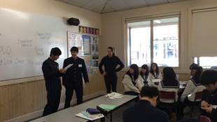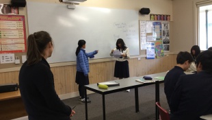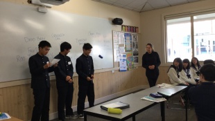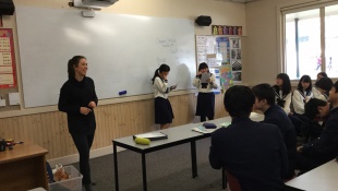 オーストラリアの人は、いろいろ略すのが好きみたいで、barbequeのことをBarbie, vegetablesのことをveggiesと言ったり、トイレはdunny, ケンカをすることをhave a blueというなど、面白い表現を学びました。その後、学んだスラングを使って文を作り、前で発表しました。