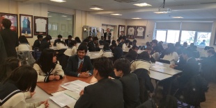 2023年03月22日(水) 国際交流 < 過去のニュース 2023英国研修4 本日もダートフォードグラマースクールに登校しています。 DGSの生徒たちと交流したあと、Welcome Ceremonyを開催していただきました。 少しずつ生徒たちと打ち解けてきて、楽しそうにしています。 午後からはGreenwichに行きました。 定番の写真を撮っています。生徒たちの表情から楽しい様子が伝わってきますね。