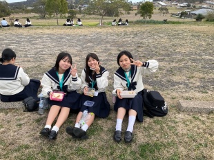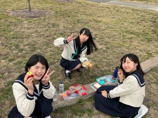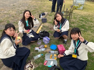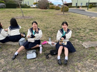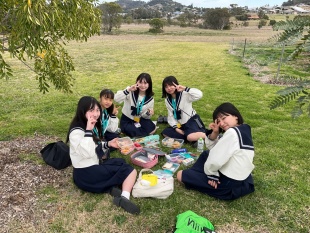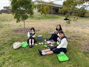 ランチタイムにはホストファミリーに持たせてもらったランチパックを外でいただきました。