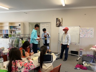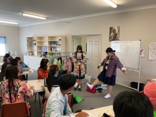 午前中は、オーストラリアのお金の種類やショッピング、衣服などに関する単語やフレーズを学んだ後、「あなただったら、Tシャツを買うのにいくら使う?」「お金があったら何を買いたい?」と話し合ったり、ファッションショーをして、パートナーのファッションについて前で発表したりしました。