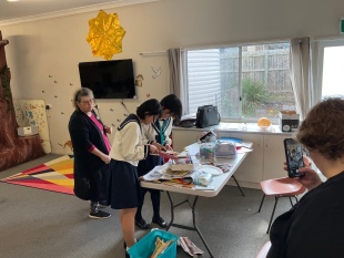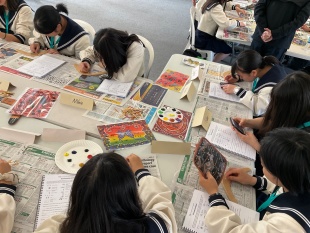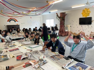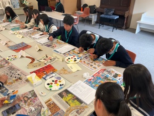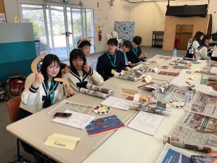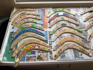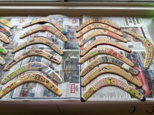 今日はアボリジニのアート作品を見ながら、自分たちでもブーメランに絵付けをしてみました。なかなか上手にできたと思いませんか?