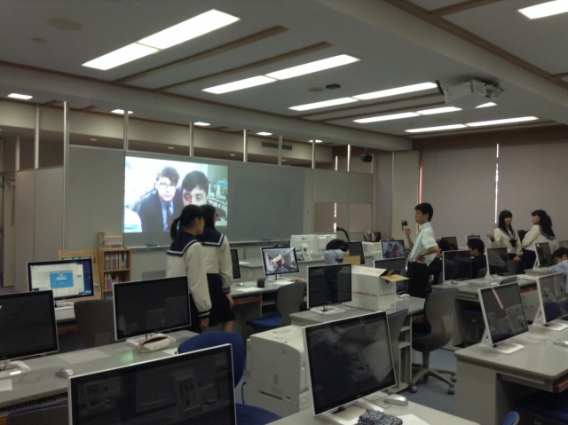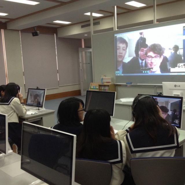 2015年05月15日(金) 国際交流 < 過去のニュース スカイプ交流 with Dartford Grammar School 5月11日(月)の放課後、3月の英国研修に参加した生徒たちが、現地で交流したダートフォード・グラマースクールの生徒たちとスカイプ交流を行いました。英国研修から帰国後、約8時間(日本時間17時:英国時間9時)の時差を越えて、限られた時間ではありましたが、積極的に英語とボディーランゲージも交えながら、双方にとって素晴らしい交流が出来ました。