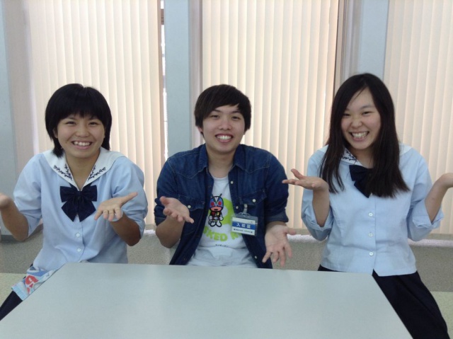 2015年06月23日(火) 国際交流 < 過去のニュース ダートフォードより 感動の再会!! 6月23日(火)Dartford Grammar Schoolより、2年前に来校して交流を行ったWill君が来てくれました。 昼休憩に生徒ホールで感動の再会です。 2年前の交流メンバーが、今でもFacebookやツイッターなどのSNSを通して繋がっていることは本当に素晴らしいことですね。 画像左から、2年前にホストファミリーをしてくれた3年B組 梅本有澄さん、Will君、右は昨年度DGSに代表派遣された松藤紗奈さん。