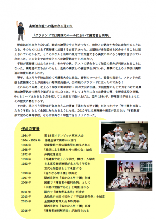 今回の演劇は、沖縄で実際に起こった出来事で、聴力に障害をもった高校球児たちが甲子園を目指し、高野連に加盟するまでを描いた青春物語です。