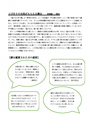 関西芸術座は、開校当初に『奇跡の人』、平成17年に『少年H』、平成24年に『チンチン電車と女学生』を本校で公演していただき好評を博しました。