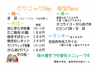 中学高校それぞれにピクニックエリアが設けられ、また限定メニューが数多く振る舞われました。