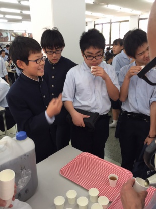 2017年05月15日(月) 生徒ホール < 過去のニュース 食堂企画第3弾「花まつり」 チラシです。 食堂企画第3弾!! 5月10日の花まつりに合わせて、お昼休みに食堂にて甘茶が振る舞われました。 初めて本物の甘茶を体験する生徒達!味はどうだったかな?