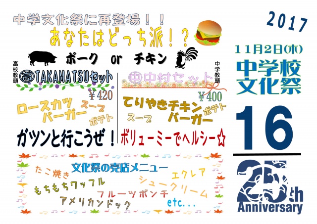 食堂企画第16弾「中学生にスペシャルバーガーセット!どちらがお好き?」