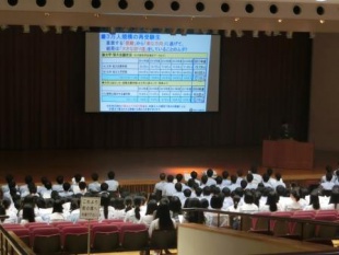 2018年06月18日(月) 中6・高3 < 過去のニュース 中6高3 学年集会・保護者会 6月16日(土),中6・高3で学年集会・保護者会が行われました。 駿台の大草敏広先生から,夢の実現に向けて,進路に関する説明をしていただきました。 この話をしっかり心にとめつつ,残された時間しっかりと目標の決定と学習に励んでほしいです。