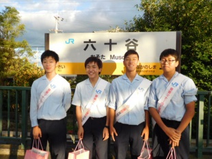 2017年09月28日(木) 生徒会 < 過去のニュース 電車マナー向上キャンペーン 本日17時よりJR六十谷駅にて、本校の生徒会役員がJR西日本と協力し、電車のマナー向上キャンペーンを行いました。 六十谷駅を利用されている方々、六十谷駅―和歌山駅間の電車に乗車されている方々に、キャンペーン用のティッシュや飴を配布しました。 駅構内放送では、高校生徒会長がマナーアップの呼びかけをしました。