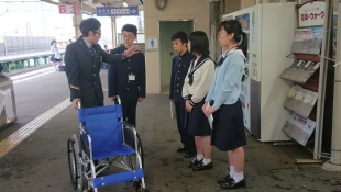 身体に障害がある方、ご高齢の方や小さなお子さんなど、駅で困ったようすの人を見かけたら、自分たちに何ができるのかを体験を通して学習しました。