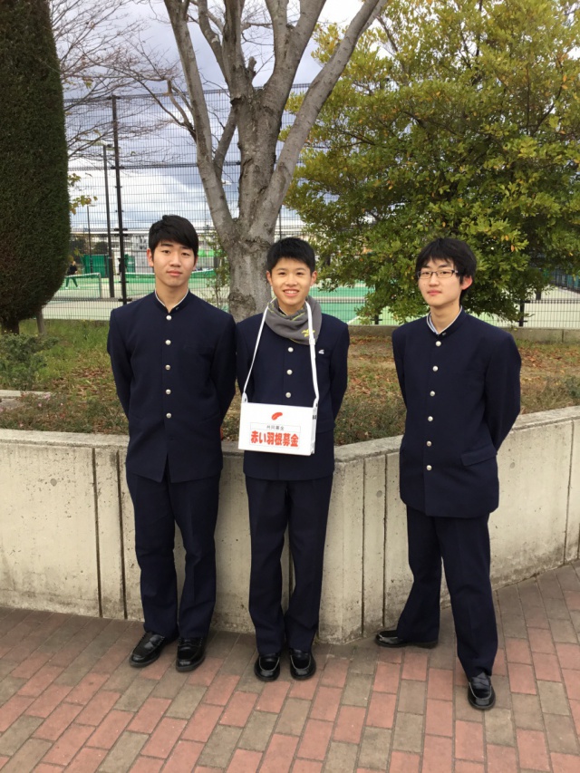 2018年12月10日(月) 生徒会 < 過去のニュース 赤い羽根募金1日目 中高生徒会役員の皆さんで、本日と明日、赤い羽根募金を実施しています。小さなことかもしれませんが、募金を通じて少しでも役に立てればと思います。生徒の皆さん、明日もよろしくお願いします。