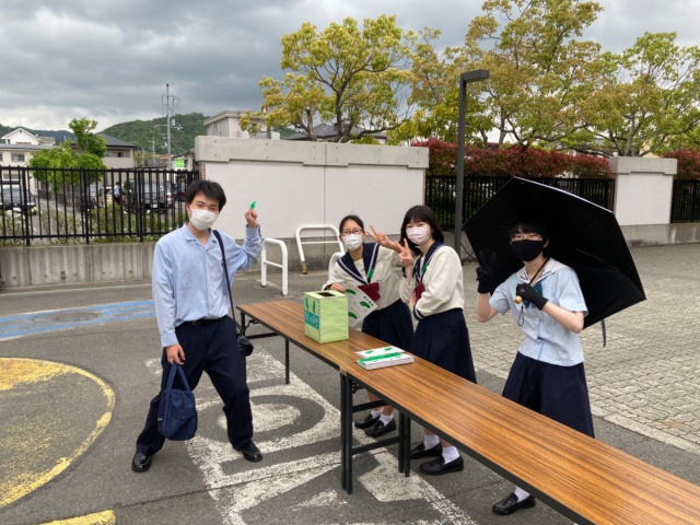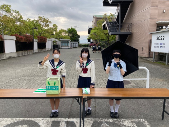 4月25日㈪・26日㈫の2日間にわたって、中学生徒会中心に緑の募金を行いました。2日間という短期間でしたが募金額は「14,874円」でした。募金してくださった生徒の皆さん、教職員の皆さん、誠にありがとうございました。