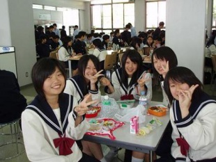 学食である生徒ホールは生徒たちが大好きな場所。お弁当持ってきた子たちも、クラスの違う仲良しグループで集まって楽しくおしゃべりをしながらお昼休みを過ごします。中学生、高校生が一緒に過ごせるのも楽しみのひとつです。あまりにも元気がいいので教員たちは「なかなか入りづらくて・・・」ということも時々あります。