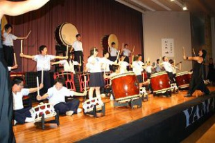 出演は、奈良・明日香の地を拠点に世界を股に掛けて活躍されている和太鼓 倭(やまと)です。ヨーロッパ公演の最中で、ドイツからかけつけていただきました。