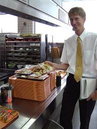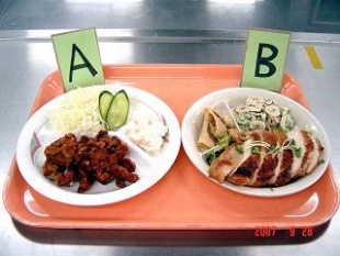 2007年10月11日 | その他 日替わりのお弁当 英語科 マイケル先生 生徒ホールのメニュー特集。 先日、日替わりランチを紹介しましたが、AランチとBランチをミックスして販売しているのがこの日替わりのお弁当です。 AランチとBランチのおいしいところをミックスし、ボリュームも味も満点です。 値段は、ランチと同じく380円。 今日は、英語科のマイケル先生がホールで買っていました。