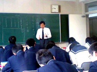 国語の早野先生が古典のノートの作り方を説明してくれています。