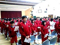 20時30分からの入浴の後、約1時間かけて校歌と賛歌の練習をしました。