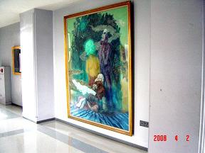 2008年04月02日 | その他 始業式まであと二日 橘喜久雄氏「青い陽に」 本日は4月2日、始業式まであと二日です。 校舎内では、各教室が新教室名のプレートに張り替えられ、ローカもワックスがけが済み、ピカピカの状態で新学期スタートを待っています。 画像は3階のローカに飾られている絵です。 橘喜久雄氏に寄贈していただいた「青い陽に」です。