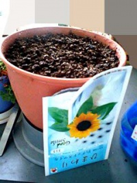 さて、理科室では夏らしくミニひまわりを植えてみました。