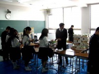 新入生は10時30分までに指定された教室に入り、まず、宿題回収がなされました。