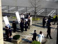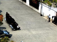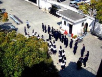 中1・高1の新入生は、今日は個人写真・集合写真撮影を行います。校門付近で撮影は行われました。