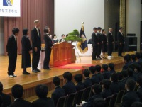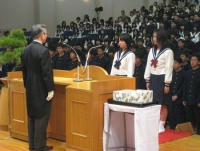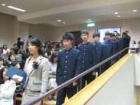 明日から11日(土)までの3日間、新入生は宿泊研修を行います。今日は、写真撮影のあと、宿泊研修の事前指導が行われました。