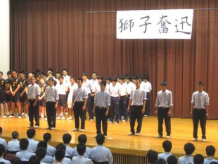 「獅子奮迅」というすばらしい言葉が生徒会より送られました。また、池田教頭先生からは「開智の新たな1ページを作ってきてください!」という激励の言葉を頂きました。出場選手の皆さん、今までの練習の成果を十分に発揮し、悔い残らぬよう頑張ってください!!