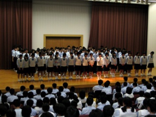 2009年07月01日 | 中等部 中体連壮行会 7月に行われる中学校総体の壮行会が行われました。生徒会の野口君と近藤教頭先生からは、「爽やかな態度で日頃の練習成果を発揮し、全力でプレーしてきてください。」と激励のお言葉をいただきました。各部のキャプテンが少し緊張しながら、しかしはっきりした口調で試合への意気込みを話していました。みなさん、一致団結して頑張ってきてくださいね。