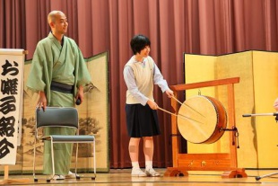 開智の生徒達の鑑賞態度の良さ、笑いに対する反応のよさ、お囃子教室などへの積極的な参加などに落語家の皆さんはとても感動されていました。