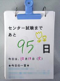 大学入試センター試験まであと「95日」と教室の日めくりにも書いてありました。生徒たちの手製の日めくりカウントダウンです。
