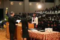 代表が受け取った証書は、式典の後、教室で担任の先生から一人一人に「おめでとう」という言葉と共に、授与されます。