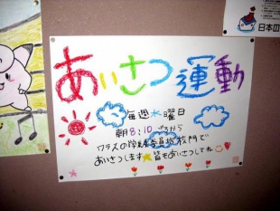 2010年05月26日 | 全校 あいさつ運動 あいさつ運動 あいさつ運動 毎週水曜日8時10分からあいさつ運動が行われています。 各クラスの学級委員が集まり、登校してくる生徒たちに向かって元気よくあいさつしています。 すべてのコミュニケーションは、まず「あいさつ」から。 一日を元気なあいさつからはじめましょう!