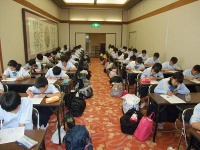 画像は午前の英語授業の様子。Joe先生は元気いっぱいで生徒をグイグイ引っ張ってくれます。いよいよ語学研修が本格的に始まりました。