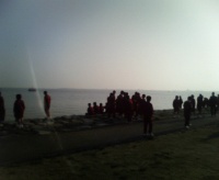 現在、2m×3列のうねができました。まず、運動場の土を耕し、その上に昨年プランターで使った土をかぶせ、さらに新しい野菜培養土をのせてふかふかのうねをつくりました。