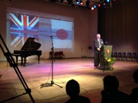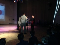 2014年03月24日 英国研修(3) 本日はDartford Grammar Schoolとの交流日です。 オーク校長先生が温かいWelcome Speechで迎えてくれました。 画像(右)は記念品贈呈の様子。和歌山の伝統漆器を贈呈しました。 理科実験の様子。グループになって両校の生徒が互いに協力しながら実験を行いました。 記念撮影