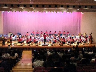 ピッコロ、フルート、クラリネット、サックス、トランペット、ホルン、トロンボーン、ユーフォニアム、テューバ、コントラバス、パーカッション…など、たくさんの楽器のハーモニーが観客を魅了しました。