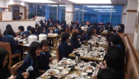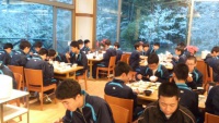 校歌練習で大声をだしたので、夕食もきれいに完食していました。おかわりも多数!朝もしっかり食べている生徒が多く、現段階で体調を崩している人がいないのもそのお陰かもしれません。