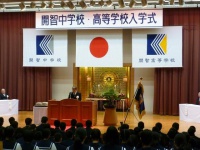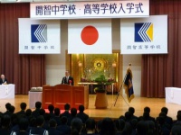 学校長式辞。開智に入学したという自信と誇りをもって颯爽と行動してほしい、また高い目標をもって充実した一日一日を過ごしてほしいとお言葉を述べられました。
