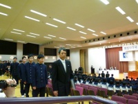 来賓祝辞。開智の建学の精神である『四恩報答』を胸に、開智での学校生活を辛いときこそ精一杯頑張ってほしいという願いを込めた祝辞をいただきました。
