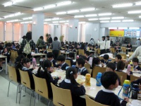2011年02月14日 | その他 おのみなと紀泉台幼稚園 来校 食事風景 本日、おのみなと紀泉台幼稚園児が来校しました。校長先生の挨拶の後、マイケル先生の英語のレッスンを受けました。 写真は、食事の様子です。隣の友達とお話をしながら、お弁当を楽しそうに食べていました。 中学職員室前 お弁当の後は、渡り廊下を渡って中学校棟へ。園児にとっては、なが~い渡り廊下だったかもしれません…。 きちんと整列して、とてもお利口さんでしたよ! 遊びの時間 その後フェニックス体育館で、先生と一緒にお遊びの時間です。元気いっぱいに走りまわり、楽しそうに遊んでいました。帰りに、記念撮影をして学校を後にしました。 スクールバス スクールバスに乗って、帰路につきました。