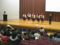 画像は、説明会が始まる前のアカペラ部の発表です。