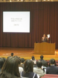 教育内容の説明の後は、各受験科目の「直前ワンポイントアドバイス」です。多くの保護者の方々や受験生が熱心にメモを取っておられました。