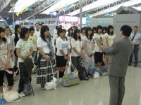 画像は関西国際空港での出発前の様子。教頭先生に激励の言葉をいただいて出発しました。