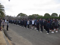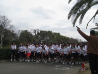 11:30 続いて男子のスタートです。走り終えた女子の声援を浴び、勢いよく飛び出しました。男子は5、8キロを走ります。先導は体育科・山尾先生。離されないよう、必死で後ろ姿を追いかけます。