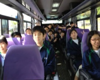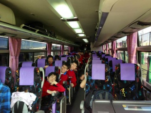 15:25. 岸和田SAを出発しました。学校到着時刻は予定通り16:00頃、解散予定は16:30です。
