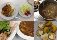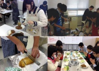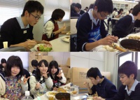 2013年01月24日 | 中等部 中学3年生 調理実習 家庭科の授業で、調理実習が行われました。 テーマは「カレーライス」と「サラダ・デザート」です。 慣れない手つきで下ごしらえをし、煮込んでいきます。 そして約一時間後、それぞれの班で工夫を凝らしたカレーが できあがりました。 自分たちの作ったカレーをいざ試食! 「ちょっと野菜が堅い!」「御飯がパサパサしてる」といいながらも全員完食していました。