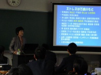 2012年12月17日 | 中等部 中3スーパー理進コース 出張講義 本日、和歌山県立医科大学より仙波恵美子教授が来校し「心の痛みと身体の痛み」をテーマに講義をしてくださいました。 ストレスが脳に与える影響や、笑いの効能というような脳の働きについて、具体的な例を挙げながらわかりやすく説明してくださいました。専門的な内容ではありましたが、生徒達は興味深く耳を傾けていました。