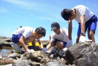 2012年07月18日 | 中等部 中学3年生 理科実習 今日と明日の2日間、中学3年生は理科実習を行います。 本日は加太の海辺に行き臨海実習。 海辺の生物を観察しスケッチします。 お昼ご飯をたべて生き物の採取をはじめました。 暑い中生徒たちは元気いっぱい様々な生物を採取、観察しました。